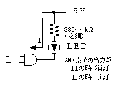 プ抵抗(4.7kΩ)による回路を使用する。またIC出力のHまたはLの確認は、
